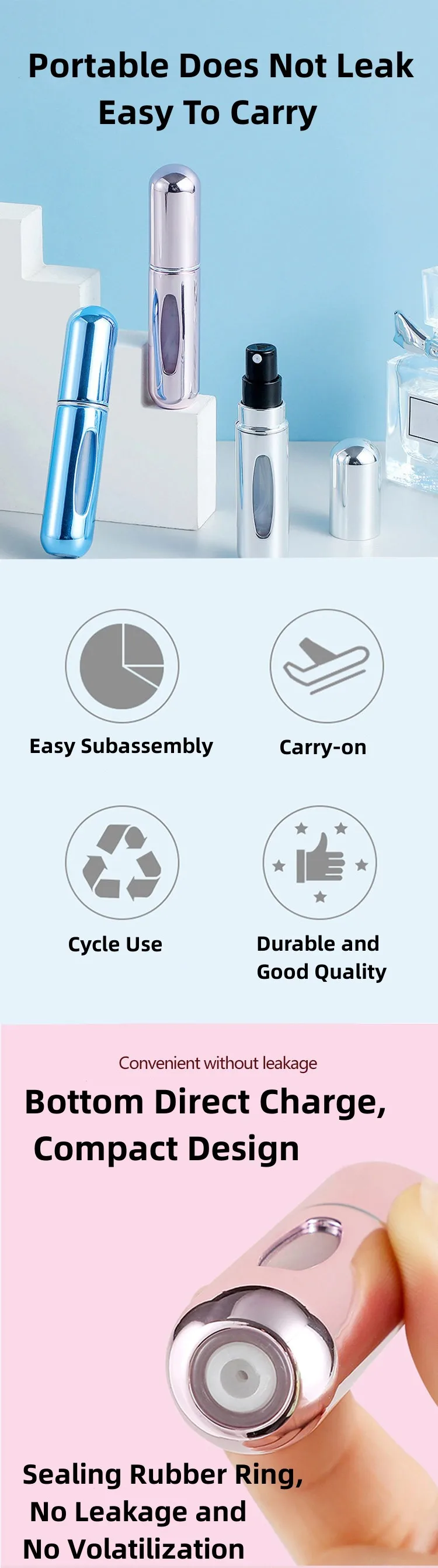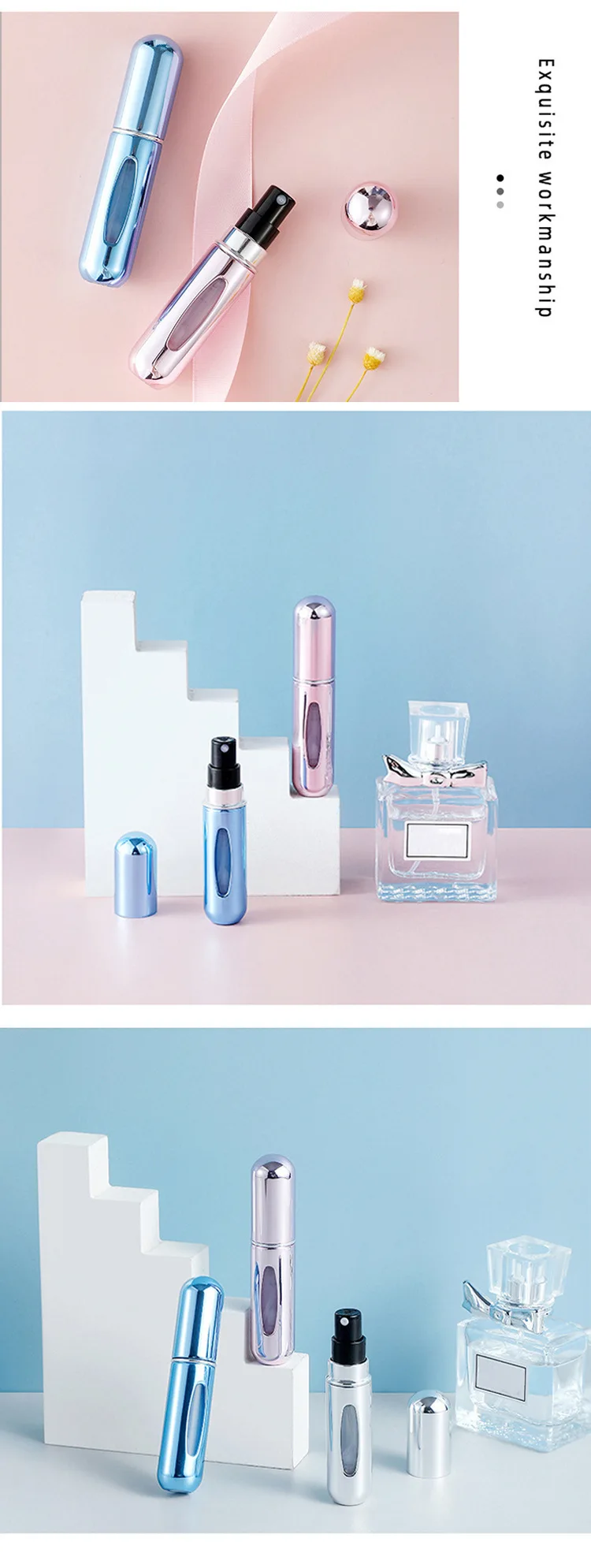 Botella pulverizadora de perfume de viaje portátil de 5 ml con herramientas para el cuidado de la piel, cómoda y fácil de transportar, ideal para uso y retocaciones en movimiento